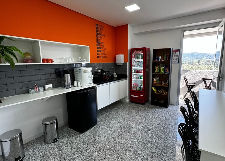 • Mini copa com frigobar, bebidas geladas, snacks e café.